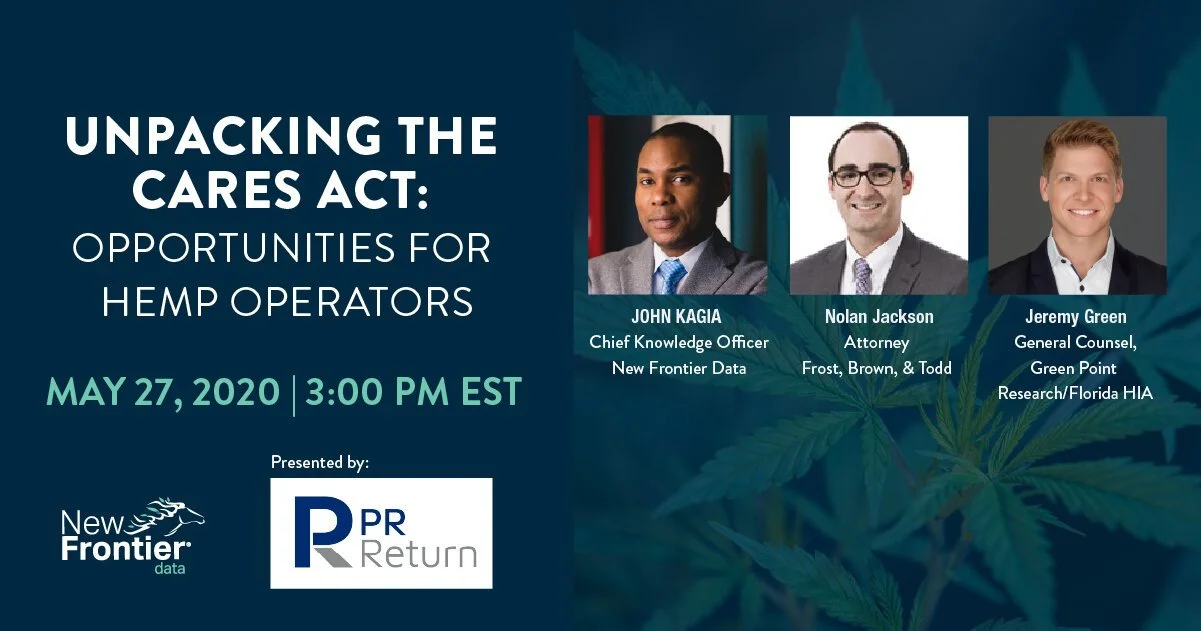 Today, longtime client New Frontier Data is hosting a free webinar called Unpacking the CARES Act: Opportunities For Hemp Operators, and PR Return is the presenting sponsor.