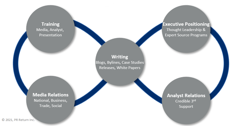 At PR Return, we’re all about helping clients develop marketing and communications that boost credibility, thought leadership and, ultimately, the bottom line. The lynchpin for any successful public relations program is creating consistent brand messaging across communications channels that align with business goals. By embracing an integrated communications approach to PR, companies can deliver a clear, coherent and seamless experience to their key audiences that sets them up for success.